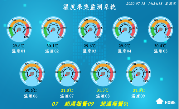 超温报警:当温度超过“超温报警”所设定的温度值时,屏幕正下方滚动显示“超温报警”。